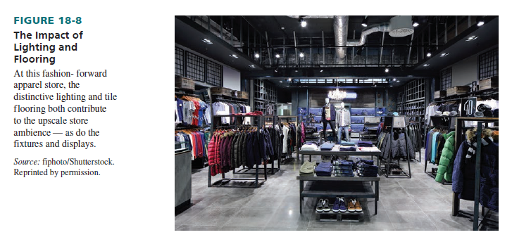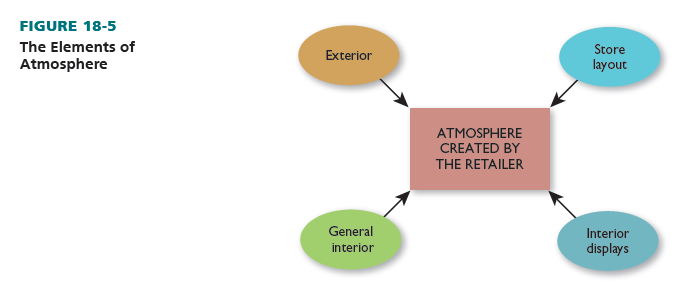 Store atmosphere (atmospherics) can be divided into these key elements: exterior, general interior, store layout, and displays. Figure 18-5 contains a detailed breakdown of them.
