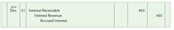 Homer Company’s accounting period ends on December 31. Thus, an adjusting entry must be made to accrue interest for five months (August 1 to December 31) of $450 ($18,000 X 6% X /l2), as shown in Exhibit 1. The adjusting entry to record the accrued interest is as follows: