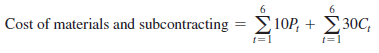 - Cost of materials and subcontracting. The material cost is $10 per unit and the subcontracting cost is $30/unit (see Table 8-3). Pt represents the quantity produced and Ct represents the quantity subcontracted in Period t. Thus, the material and subcontracting cost is