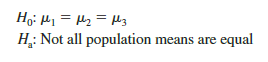 Although we will never know the actual values of m1, m2, and m3, we want to use the sample means to test the following hypotheses.