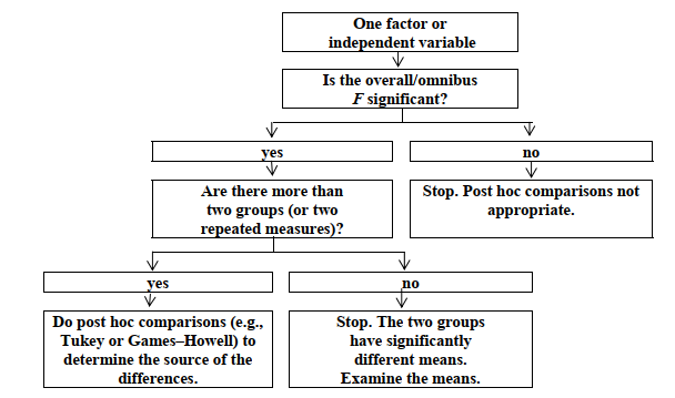 Fig. 10.3. Schematic representation of when to use post hoc multiple comparisons with a one-way ANOVA.