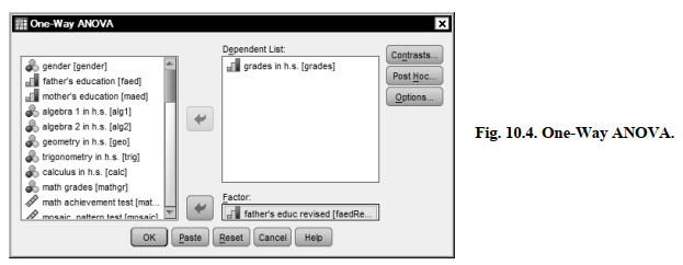 - Select Analyze → Compare Means → One-Way ANOVA… to see Fig. 10.1 again.