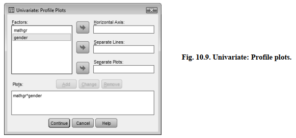 - Then also move the second independent variable, gender, to the Fixed Factor(s): box (see Fig.10.8)
