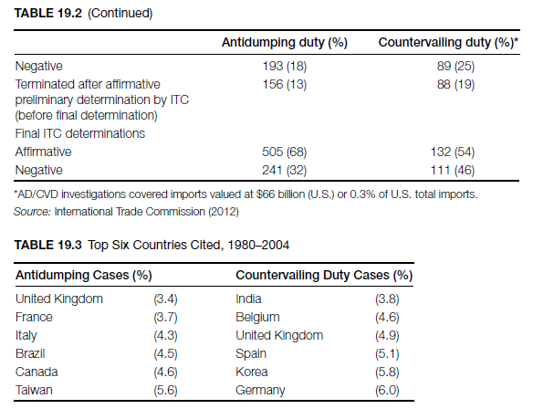 Any interested party adversely affected by a determination by Commerce or the ITC may appeal to the U.S. Court of International Trade. In the case of NAFTA members, an interested party may appeal for a review by a binational panel set up under the agreement (Tables 19.2 and 19.3).