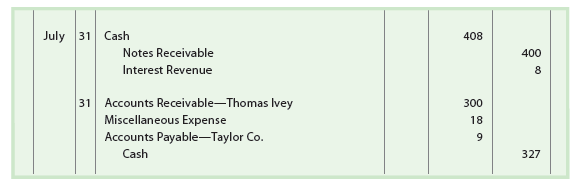 Step 7. Check from customer (Thomas Ivey) for $300 returned by bank because of insufficient funds (NSF) as indicated by a debit memo of $300.00. Bank service charges of $18, not recorded in the journal as indicated by a debit memo of $18.00.