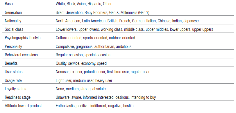 Regardless of which type of segmentation scheme we use, the key is adjusting the marketing program to recognize customer differences. The major segmentation variables—geographic, demographic, psychographic, and behavioral segmentation—are summarized in Table 9.1.