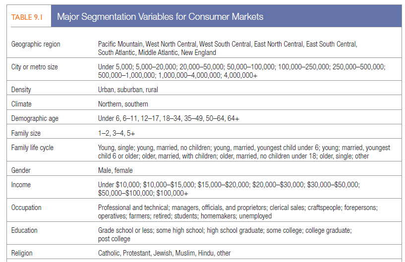 Regardless of which type of segmentation scheme we use, the key is adjusting the marketing program to recognize customer differences. The major segmentation variables—geographic, demographic, psychographic, and behavioral segmentation—are summarized in Table 9.1.