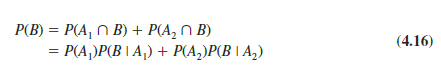 Substituting from equations (4.15) and (4.16) into equation (4.14) and writing a similar result for P(A2 ∣ B), we obtain Bayes’ theorem for the case of two events.