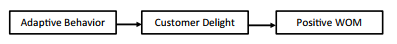 Initially, in our path model example, Adaptive Behavior was measured on a 7-point Likert scale. Now, let’s say we performed an experiment and the employee either adapted the service experience for the customer (treatment) or they did not adapt the experience (control). After the experience, customers were asked questions about feelings of delight and intentions to spread word of mouth. In the data, all respondents who had an adapted service were coded as a “1”, and all respondents who did not receive an adapted ser- vice were coded as a “0”. The column label for this dummy coding is called “BinaryAdapt”. After the category variable has been dummy coded, we can set up the model in AMOS and run the analysis.