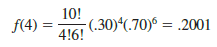 If we consider variations of the Martin experiment, such as 10 customers rather than three entering the store, the binomial probability function given by equation (5.12) is still applicable. Suppose we have a binomial experiment with n = 10, x = 4, and p = .30. The probability of making exactly four sales to 10 customers entering the store is