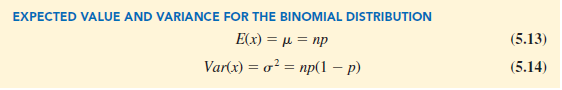 In Section 5.3 we provided formulas for computing the expected value and variance of a discrete random variable. In the special case where the random variable has a binomial distribution with a known number of trials n and a known probability of success p, the general formulas for the expected value and variance can be simplified. The results follow.