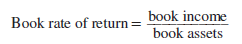 Financial managers sometimes use these numbers to calculate a book (or accounting) rate of return on a proposed investment. In other words, they look at the prospective book income from the investment as a proportion of the book value of the assets that the firm is proposing to acquire: