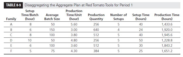From an aggregate plan, a planner must disaggregate the available information and build a rough master production schedule (MPS) that identifies the batches produced in each period at the level of each product family. We return to the Red Tomato example to illustrate a simple approach to disaggregate an aggregate plan. Although this approach is not necessarily optimal, it is simple to implement and allows for a feasibility check. More sophisticated methods (e.g., see Bitran and Hax, 1981) are available if a planner wants to search for better solutions. These methods, however, are difficult to implement and may not be able to reflect all the complex realities. For this reason, we propose this simple approach.