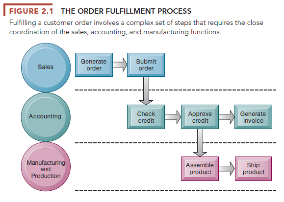 What at first appears to be a simple process, fulfilling an order, turns out to be a very complicated series of business processes that require the close coordination of major functional groups in a firm. Moreover, to efficiently perform all these steps in the order fulfillment process requires a great deal of information. The required information must flow rapidly within the firm from one decision maker to another; with business partners, such as delivery firms; and with the customer. Computer-based information systems make this possible.