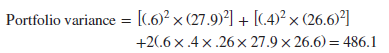 The standard deviation is √486.1 = 22.0%. The risk is now less than 60% of the way between 26.6 and 27.9. In fact, it is almost a fifth less than investing in just one of the two stocks.