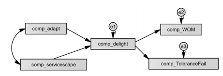 Up to this point, we have tested mediation using the raw data. AMOS will allow you to test mediation with a correlation/covariance matrix as your input, but it will require some addi- tional steps. For simplicity, let’s use our existing example, except we are going to test for mediation with a path model that has composite variables. If we are looking to test that Adap- tive Behavior has a significant indirect effect to Positive Word of Mouth, we need to make sure the summary data is in a format that AMOS can read. For a review of how to use a correlation or covariance matrix as input data, see Chapter 5, page 133.