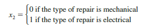 If β2 is positive, the mean repair time for an electrical repair will be greater than that for a mechanical repair; if β2 is negative, the mean repair time for an electrical repair will be less than that for a mechanical repair. Finally, if β2 = 0, there is no difference in the mean repair time between electrical and mechanical repairs and the type of repair is not related to the repair time.