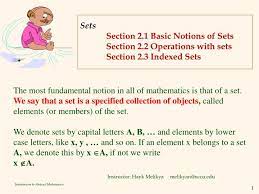 Set: is a collection of elements Capital letters (A, B, C . . .) are customarily used to symbolize sets. Elements: may be numbers, measurements, materials of any kind, plants, animals, men, or any other objects or entities. Lowercase letters (a, b, c, . . .) are customarily used to symbolize elements. X =