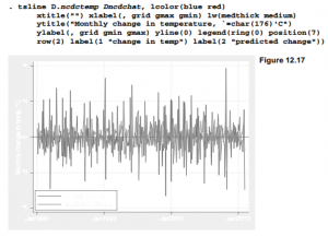 Time series analysis often involves lagged variables, or values from previous times. Lags can be specified by explicit subscripting. For example, the following command creates variable mei l, equal to the previous month’s Multivariate ENSO Index (mei) value: . generate mei_1 = mei[_n-1] Alternatively, we could accomplish the same thing, using tsset data, with