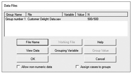 The construct of Adaptive Behavior has 5 indicators, and the other two constructs have 3 indicators each. Once I have collected and screened my data, I am ready to perform a CFA. The first thing you need to do is to read in your data file to AMOS (I have listed the data file as Customer Delight Data).You need to select the “Data Files”