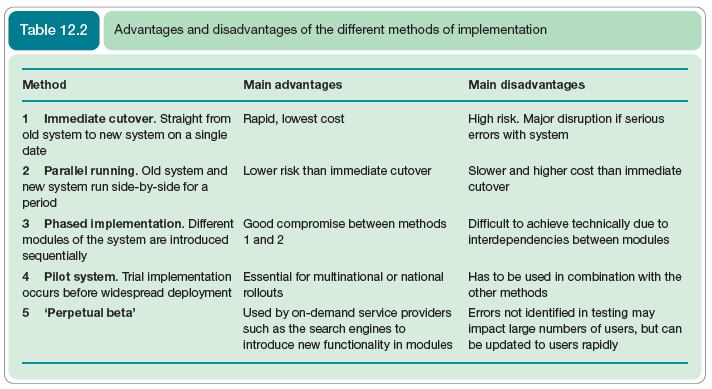 The alternatives for migrating from different versions of a system are reviewed in Bocij et al. (2005) and summarized in Table 12.2. Complete Activity 12.3 to review the relative merits of these approaches.