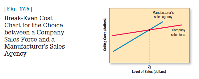 The final step is comparing sales and costs. As Figure 17.5 shows, there is one sales level (Sb) at which selling costs for the two channels are the same. The sales agency is thus the better channel for any sales volume below Sb, and the company sales branch is better at any volume above Sb. Given this information, it is not surprising that sales agents tend to be used by smaller firms or by large firms in smaller territories where the volume is low.
