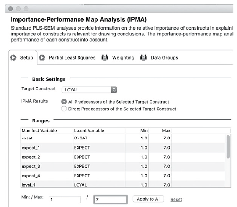 SmartPLS v3 has introduced a new way of reporting PLS-SEM results — The importance-performance matrix analysis (IPMA). It is often used in evaluating the performance of key business success drivers. IPMA is basically a xy-plot where the x-axis shows the “Importance” (Total Effect) of business success drivers using a scale of 0 to 1, and the y-axis shows the “Performance” of business success drivers using a scale of 0 to 100. This way, researchers can identify those predecessor constructs that have a strong total effect (high importance) but low average latent variable scores (low performance) for subsequent operational improvement.