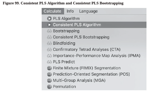- Go to the “Calculate” menu and select “Consistent PLS Algorithm”.