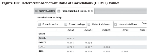 - Go to the 3rd tab where it says “Heterotrait-Monotrait Ratio (HTMT)” (see Figure 100).