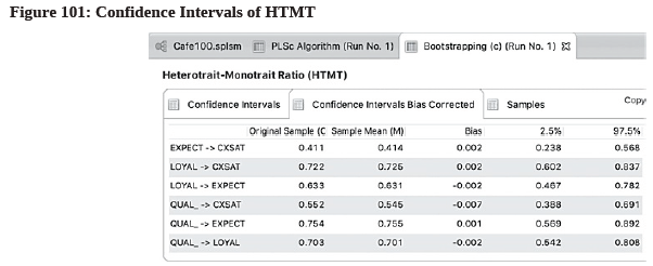 - Go to the 2nd tab “Confidence Intervals Bias Corrected” to check the values (see Figure 101).
