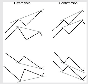 When a market indicator does not support the direction of price movement, the analyst has a strong warning that the trend may be in the process of reversing. This lack of confirmation is referred to as a divergence.