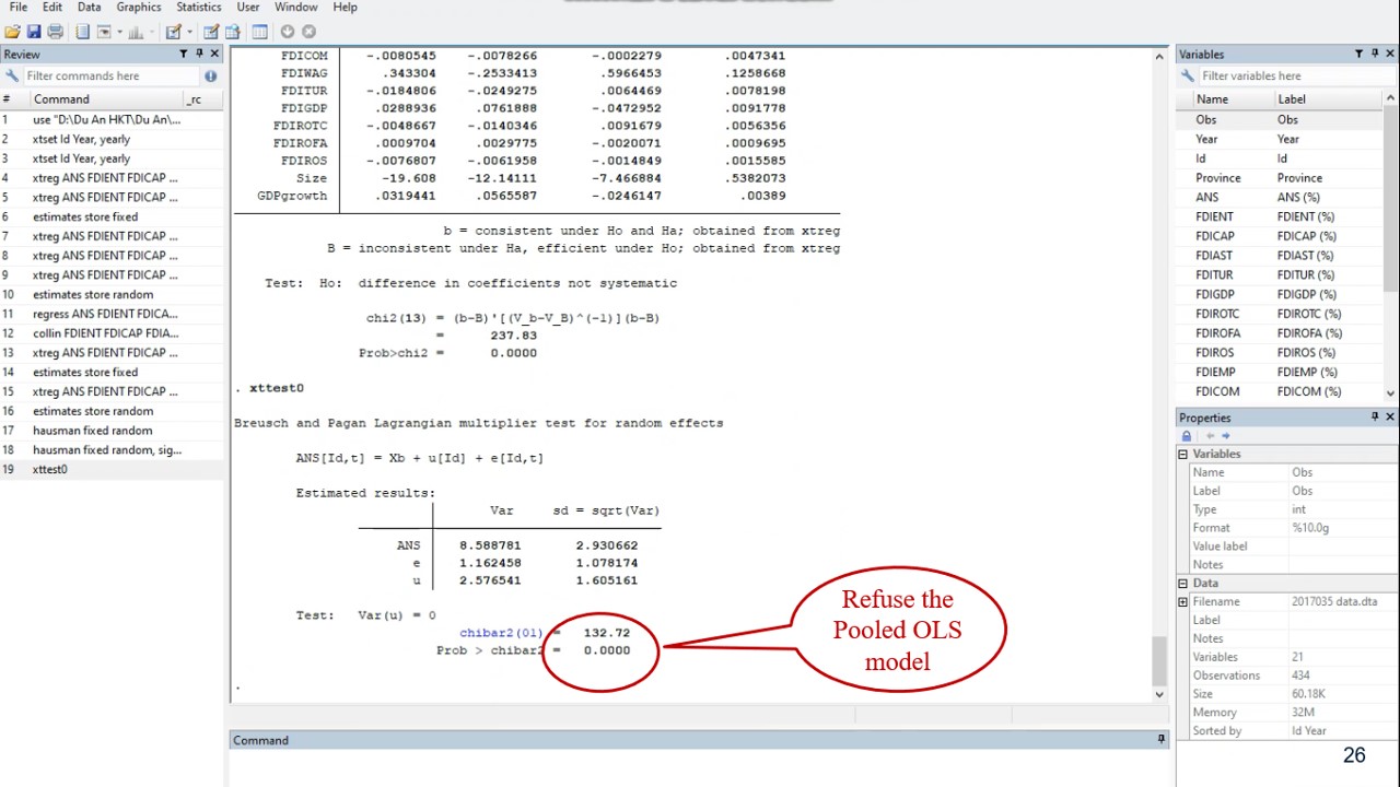 This article introduces the practical process of choosing Fixed-Effects, Random-Effects or Pooled OLS Models in Panel data analysis. We will show you how to perform step by step on our panel data, from which we published the results in our article on Sustainability review in 2019 (see Nguyen Hoang Viet, Phan Thanh Tu and Lobo Antonio, 2019). You can see the theoretical difference of regression models with Panel data (fixed-effects, random-effects, and pooled OLS) in the previous article.
