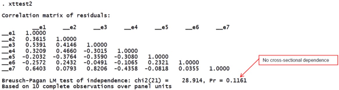 Testing for cross-sectional dependence/contemporaneous correlation: using Breusch-Pagan LM test of independence