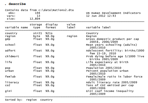 Discovering a simple, robust typology to describe nine planets was straightforward. For a more challenging example, consider the cross-national data in Nations2.dta. These United Nations human-development variables could be applied to develop an empirical typology of nations.