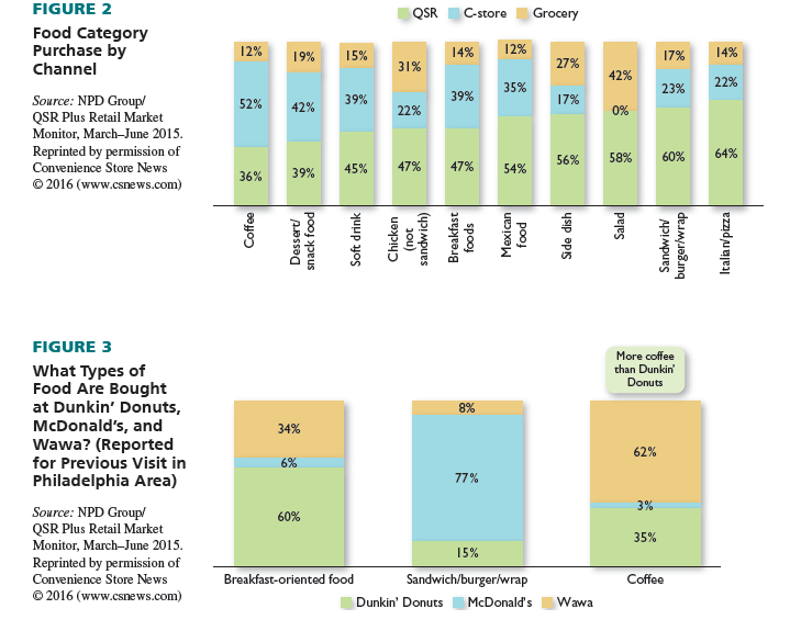 The challenge for all retailers offering quick-serve food is to find the best way to stand out among a diverse set of competitors in order to grow market share. Figures 1 through 3 provide more information on the competitive battle. Note: Wawa is a c-store chain.