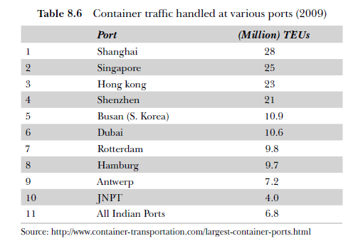 Today containerization is an accepted trend in shipping for international and domestic trade. Initially containers were used for sea transportation, but are now profusely used in inland transportation. It was Malcolm McLean, owner of a huge trucking company in the USA, who conceived the idea of containers in 1956. Containerization in shipping started in the 1960s; the first container shipping being ‘Hawaiian Citizen’. It defined the system of port management with vision and strategic planning and developed sophisticated handling facilities. Since then, the container traffic has grown in leaps and bounds, and more than 470 million TEU (of 20 ft container) were handled world over in 2009. This is expected to grow to 700 million TEUs by 2015, with largest growth being expected in Asia. Globally, containerization is expected to grow at 5 per cent in the next 10 years and in Asia at 8-10 per cent.