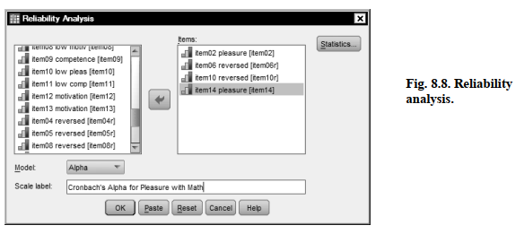 - Type “Cronbach’s Alpha for Pleasure with Math” in the Scale label