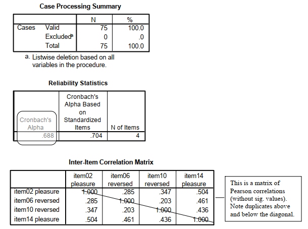 Output 8.4: Cronbach’s Alpha for the Pleasure Scale