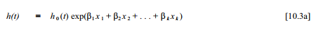 We model this hazard rate as a function of the baseline hazard (h 0 ) at time t, and the effects of one or more x variables,