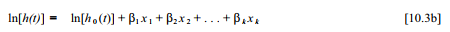 “Baseline hazard” means the hazard for an observation with all x variables equal to 0. Cox regression estimates this hazard nonparametrically and obtains maximum-likelihood estimates of the P parameters in [10.3]. Stata’s stcox procedure ordinarily reports hazard ratios, which are estimates of exp(P). These indicate proportional changes relative to the baseline hazard rate.