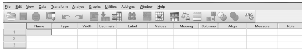 - Click on the Variable View tab at the bottom left of your screen. This will bring up a screen similar to Fig. 2.5. (Or, double click on var above the blank column to the far left side of the Data View.)