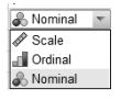- Click the down arrow and choose Nominal because for this variable the categories are unordered or nominal.