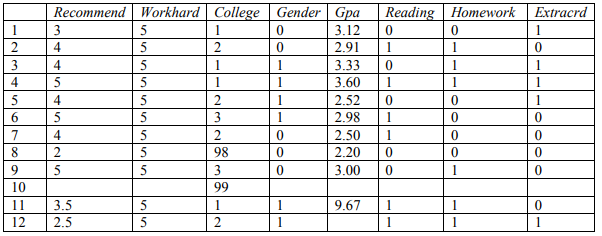 of variable names) and then press the right arrow; the number will be entered into the highlighted box. Next, type 5 in the workhard column and so forth.