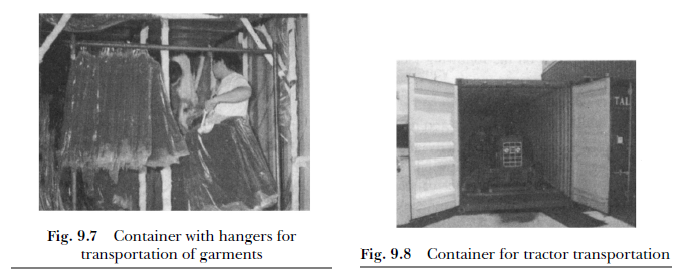 In the case of container transportation, as all precautions are taken care of, the primary packaging need not be so elaborate. One of the greatest advantages of container packing is considerable reduction in cost of primary packaging. For example, for transportation of high-value fashion garments through box containers, an innovative way of logistical packaging is being used. They have developed special hanger fixtures to keep the garment in hung position during the journey. This saves a lot on primary packaging of the product (Figures 9.7 and 9.8).