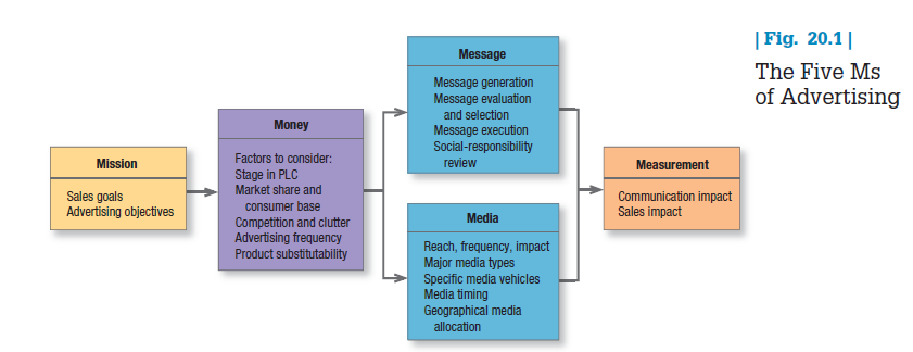 In developing an advertising program, marketing managers must always start by identifying the target market and buyer motives. Then they can make the five major decisions known as “the five Ms”: