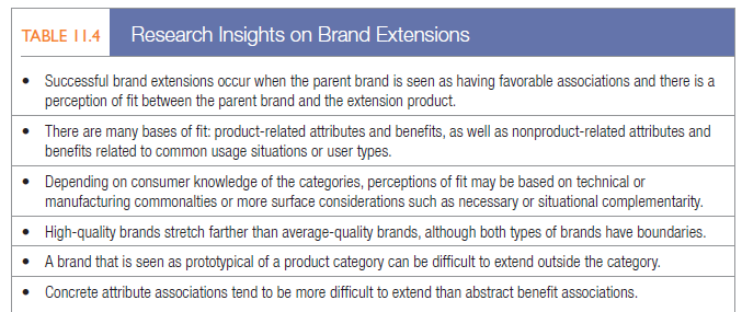 Table 11.4 lists a number of academic research findings on brand extensions.103 One major mistake in evaluating extension opportunities is failing to take all consumers’ brand knowledge structures into account and focusing instead on one or a few brand associations as a potential basis of fit.104 Bic is a classic example of that mistake.