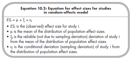 Equation 10.1 expresses this fixed-effects model of study effect sizes being a function of a population effect size and sampling error: