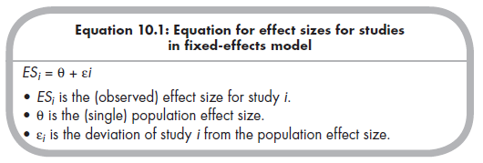 Equation 10.1 expresses this fixed-effects model of study effect sizes being a function of a population effect size and sampling error:
