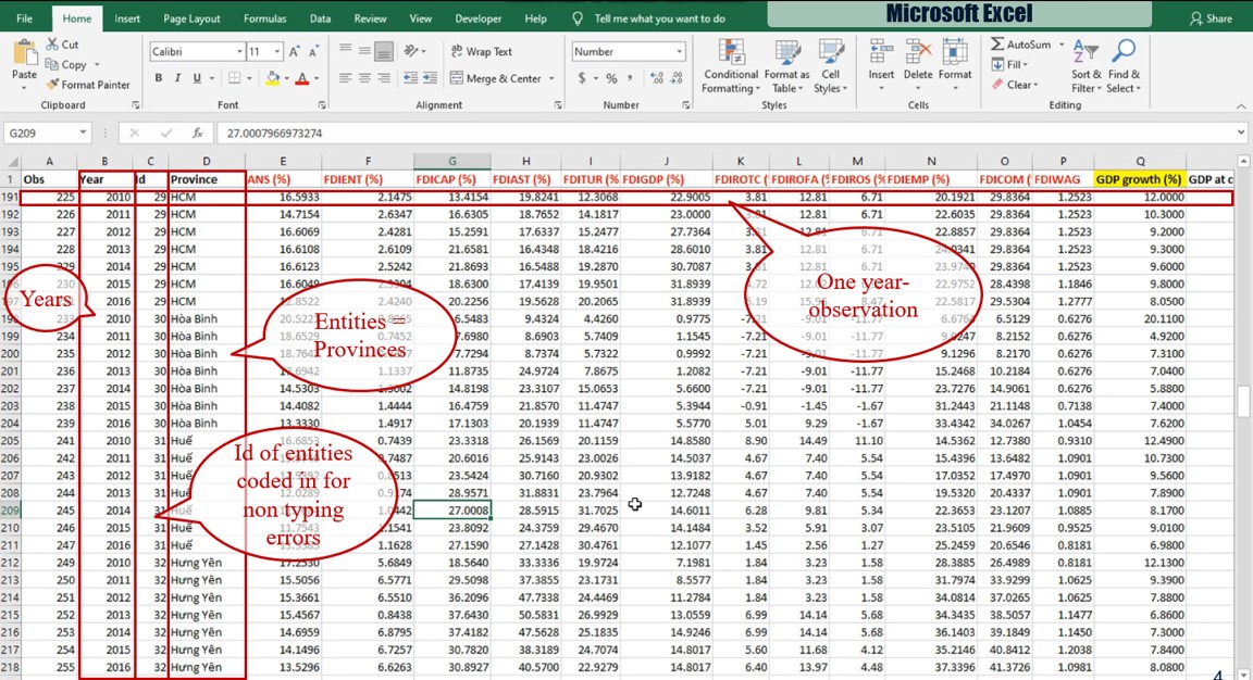 Fixed-effects model explores the relationship between independent variable and dependent variable within an entity as province in our empirical study. Each entity has its own individual characteristics as independent variables, that may or may not influence the dependent variable.