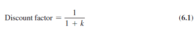 The present value of future cash flow is found by using a discount factor. If a dollar today can be invested and earn a rate of return k over the next period, an investment of $1 today will result in 1 + k dollars in the next period. An investor would therefore be indifferent between obtaining $1 in the next period or $1 / (1 + k) in the current period. Thus, $1 in the next period is discounted by the